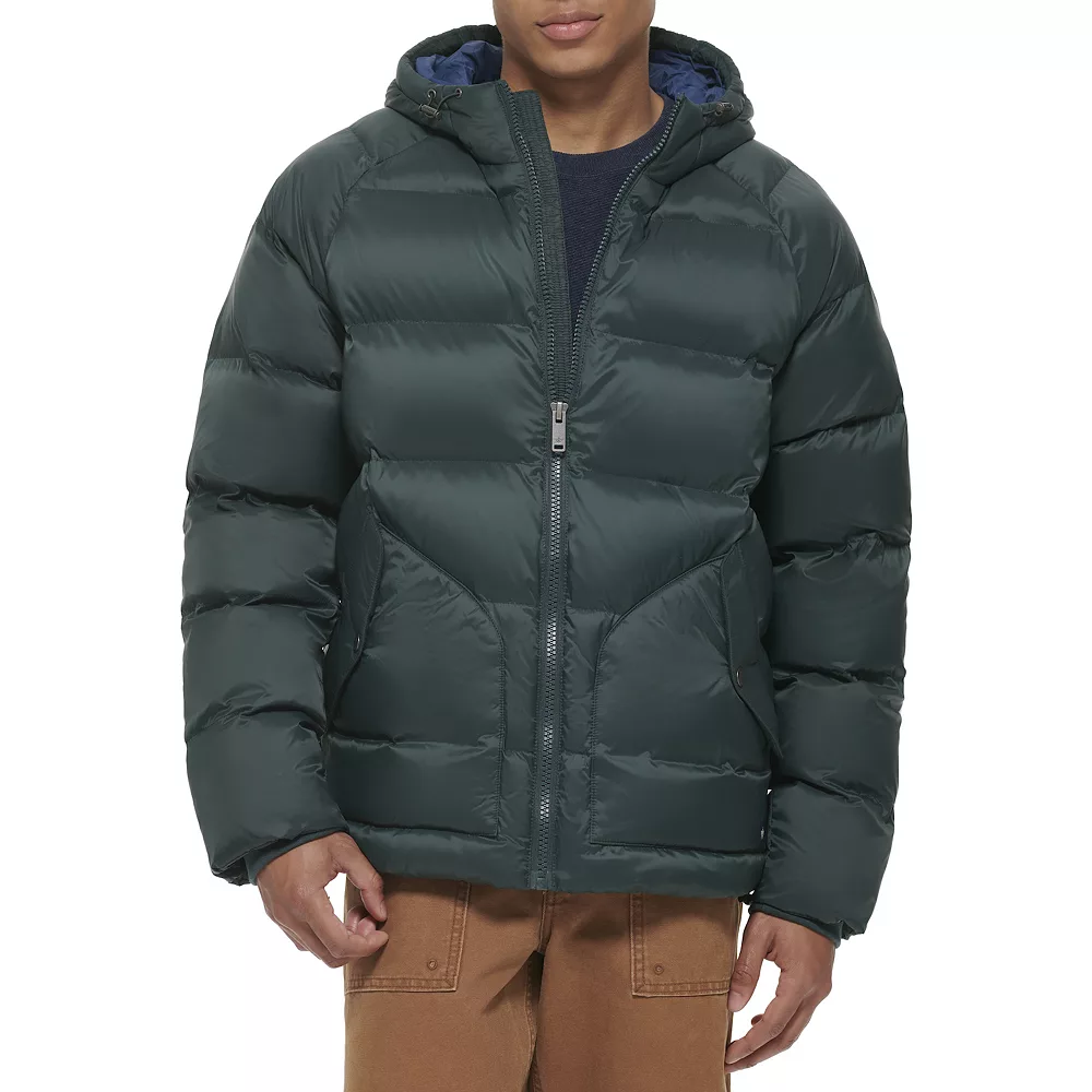 Stay warm in style even on chily days with this men’s Dockers hooded puffer jacket.